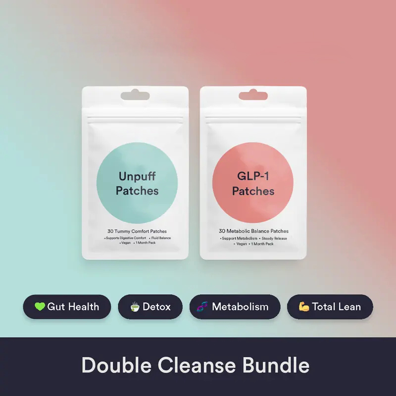 Double Cleanse Bundle: A two-step patch routine for detox, debloat, and total body reset. This bundle combines our Metabolic Balance and Unpuff patches to support gut health, reduce bloating, and promote a lighter you — from the inside out.